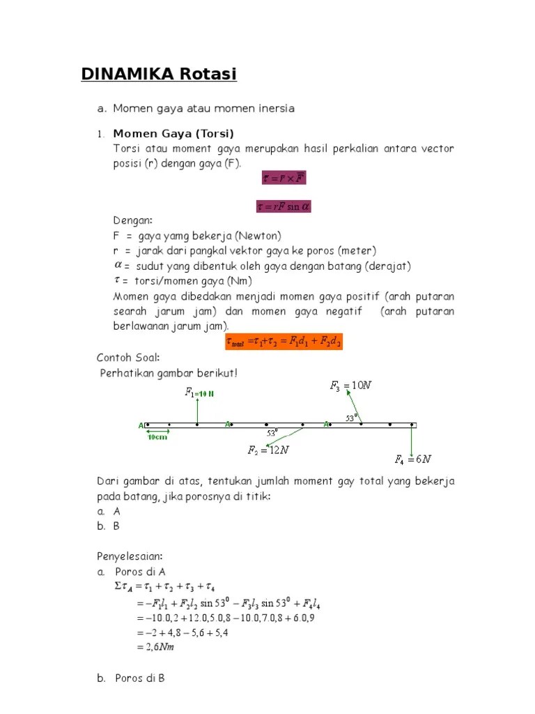 Contoh Soal Tentang Momen Gaya / Contoh Soal Dan Pembahasan Momen Gaya Dan Momen Inersia - Batang ab = 2 meter dengan poros titik a dengan gaya f sebesar 12 n membentuk sudut 60°.